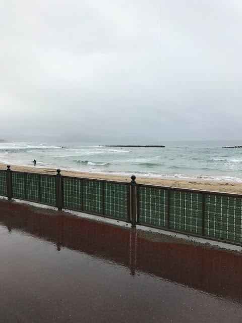 ノーブーツで入った松本さん、めっちゃ冷たい、完全冬の海やと。